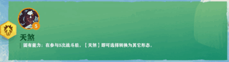 固有能力:在参与3次战斗后,即可选择转换为其它形态。