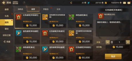 最为稳定的提升方式!稀有~神器装备可镶嵌一枚徽章,史诗装备可镶嵌两枚徽章。徽章可以通过以商城购买为主的方式获得。