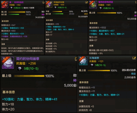 装备强化优先考虑武器,武器强化对人物提升最为明显,其次是勋章和团队勋章,强化后超高的四维成为继武器后四维收益最大的选择,最后是防具以及首饰。