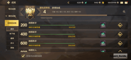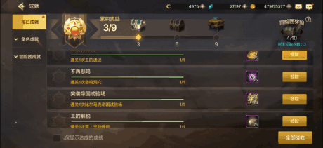 在我们达到一定等级后会开启远古副本王的遗迹、悲鸣洞穴、副本产出材料远古材料,每把除了基础掉落,在每天完成第一把可以在成就中领取75个。做远古装备剩下的材料就可以出售来获得金币,这里大飞推荐每天5次远古副本都做。3个远古图完成还可以在成就里领取10w金币,血赚。