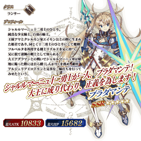 其中,SSR布拉达曼特(Lancer)不是期间限定从者,在UP结束后会进入剧情卡池。