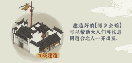 所有达到20级的玩家都可建造新建筑同乡会馆。