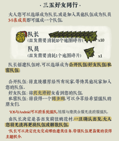 每个队伍需要3~5名队员即可出发前往桃花村。