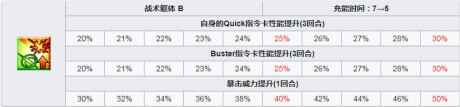 自身的Quick指令卡性能提升(3回合),Buster指令卡性能提升(3回合),暴击威力提升(1回合)技能3(灵基再临第3阶段开放)