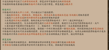 *捐献绘卷碎片即可修复追忆绘卷,每次修复绘卷都可获得随机奖励。