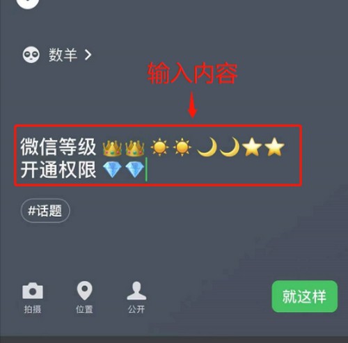 3,在编辑界面中就可以输入自己想要的文字,还有微信等级图标,这样就可以弄出来了,但是只有一天的时效。