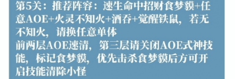 前两层AOE速清,第三层关闭AOE式神技能,标记食梦貘,优先击杀食梦貘后方可开启技能清小怪