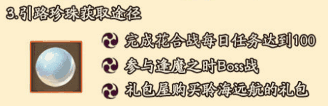 '珍珠'可通过完成花合战每日任务达到100、挑战逢魔首领、礼包商店兑换等途径获取