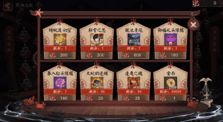 *刷新时间内阴阳师大人翻开24个贝壳后,可在达摩处领取'赤珊瑚'和'海星',首次点亮24个贝壳时,可以获得活动限定头像框'晴帆渡'