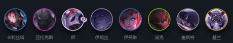 英雄:伊莉丝、崔斯特、派克、伊芙琳、卡莉斯塔、烬、亚托克斯、基兰