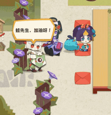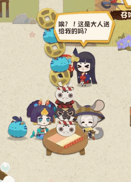 🌸第四个是让河童抛手鞠【小黑、小白、茨木、钱鼠、椒图】,在他们玩的时候点击他们【可能还有更多抛手鞠会有彩蛋的,大家不妨把喜欢带着特殊东西的小崽子都拖过去玩一下】