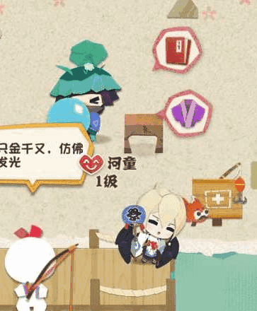 如果他和水里的鱼讲话了【有时候鱼会不在, 就等看到他和鱼讲话了点鱼就行】