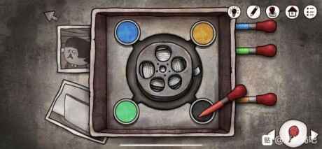 打开右侧的盒子,拿出胶卷,我也不知道密码,因为我是瞎试出来的,大概是13211?拿出胶卷在盘子里洗,让你调色,这个时候去电脑旁的机器人镜子上看,因为镜子是反的,要把这四个颜色反过来,如图四所示