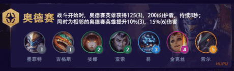 战斗开始时,奥德赛英雄获得持续8秒的生命值护盾,并增加每个相邻奥德赛英雄的伤害