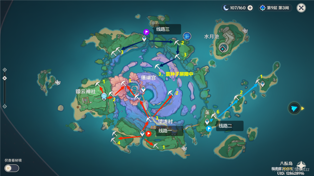 在八酝岛中,我将岛内线路分成三条,也是便于大家选择自己喜欢的路线。但是一号线路还是比较不错的。