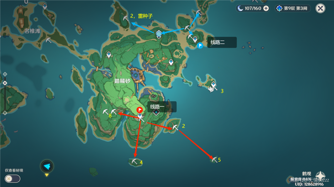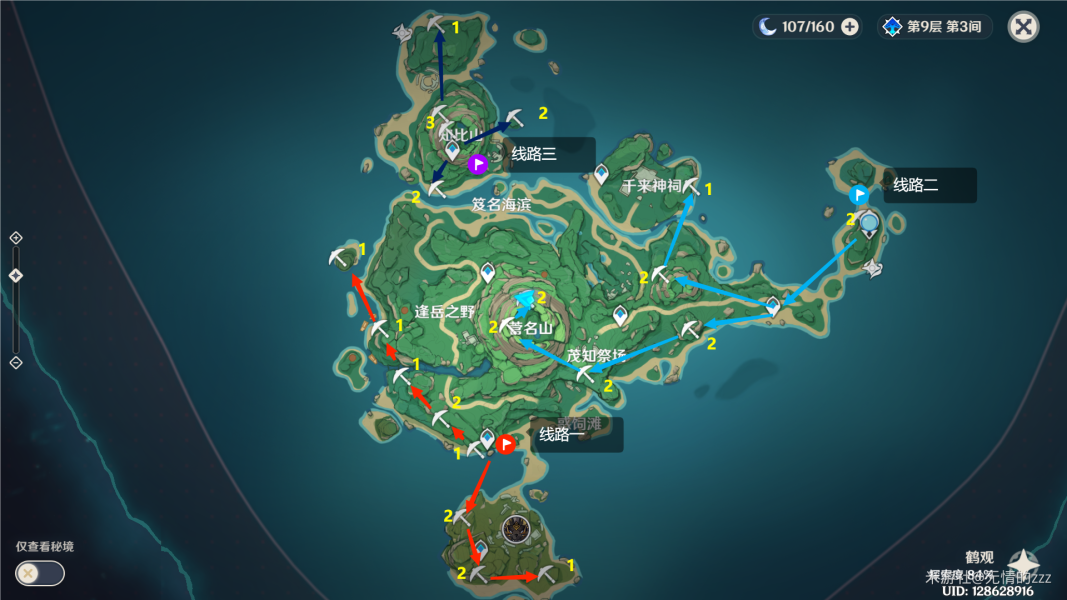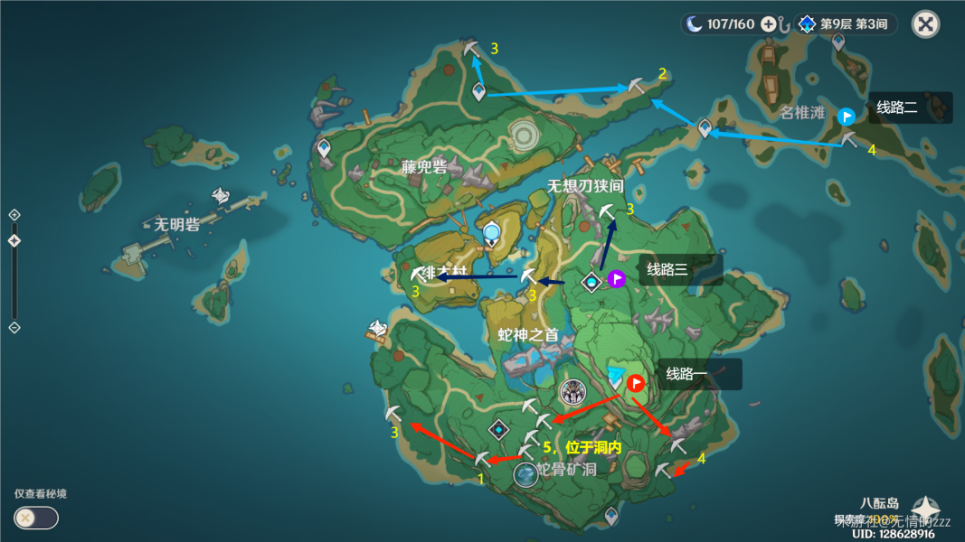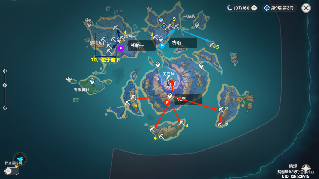 黄色数字为该点位紫晶块的数量,便于大家自己选择路线