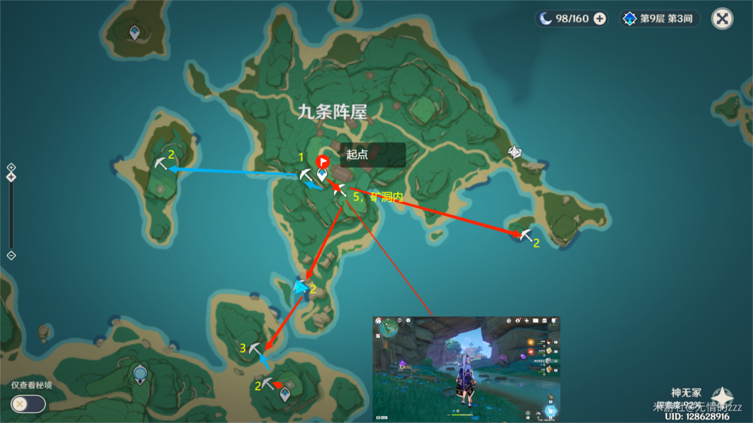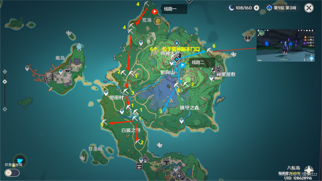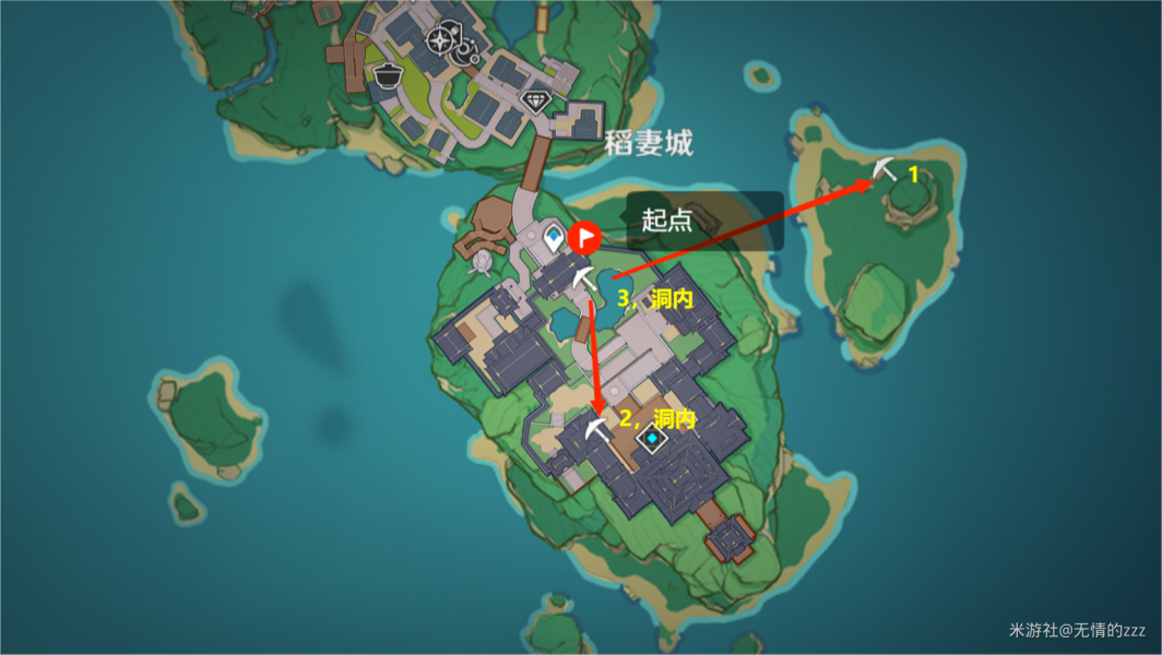 稻妻城这个路线,个人并不是很建议去,因为紫晶块的数量不多,且比较花费时间。