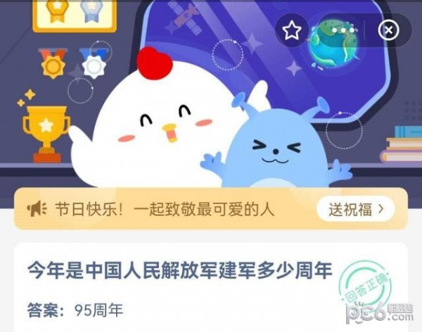 蚂蚁庄园小课堂提问:今年是中国人民解放军建军多少周年?