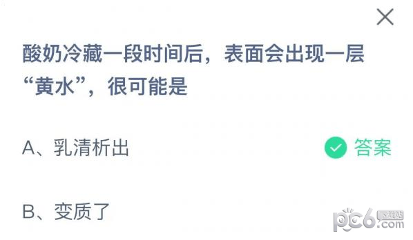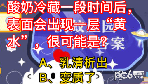 蚂蚁庄园小课堂提问:酸奶冷藏一段时间后表面会出现一层“黄水”,可能是?