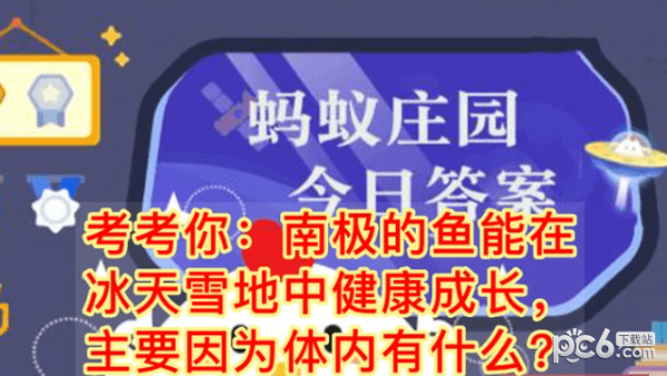 蚂蚁庄园小课堂提问:考考你:南极的鱼能在冰天雪地中健康成长,主要因为体内?