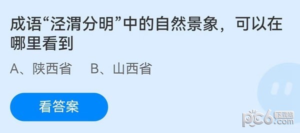 蚂蚁庄园小课堂提问:成语“泾渭分明”中的自然景象,可以在哪里看到?