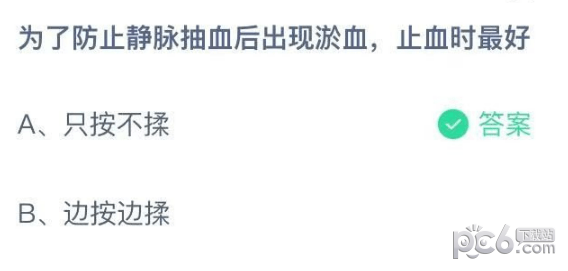 蚂蚁庄园小课堂提问:为了防止静脉抽血后出现淤血,止血时最好?