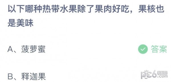 2022蚂蚁庄园6月27日支付宝蚂蚁庄园每日一题庄园小课堂今日问题:以下哪种热带水果除了果肉好吃,果核也是美味?关于这方面的知识内容很多人都不是太了解,下面就为大家公布蚂蚁庄园小课堂今日问题正确答案。