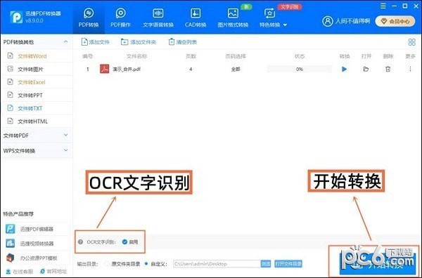 将转换的页面设置完成后,我们可以选择是否启用【OCR文字识别】功能,将所有的转换参数设置完成后,我们就可以点击【开始转换】按钮进行转换了。