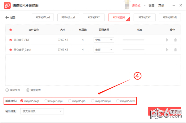 ④点击勾选文件的输出格式——.png、.jpg、.gif、.bmp、.emf;