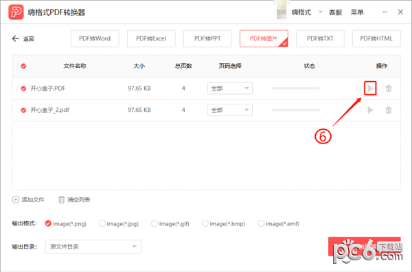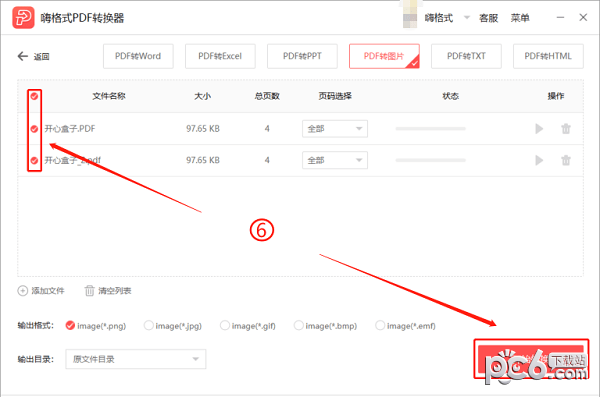 ⑥点击【开始图标】逐个转换文件;或勾选需要转换的文件后,点击【开始转换】按钮批量转换文件,即转换完成。