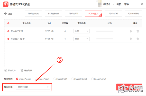 ⑤选择输出文件的存储位置——原文件目录、自定义目录;