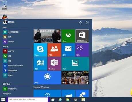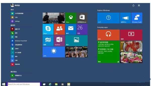 Win10采用了将Win7一样的传统开始菜单与磁贴相融合的设计方式。左边一栏显示的是常用程序和所有程序,右边显示常用的磁贴工具。