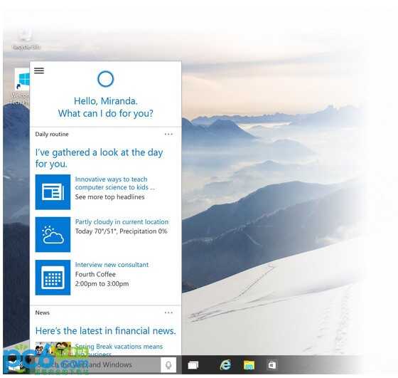 Windows Phone全屏体验不同,Win10 Cortana将采用”应用”的形式,支持输入提问和小窗口询问来唤醒。