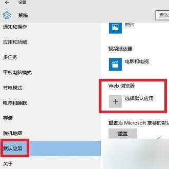 3、然后在系统下面我们找到左边的“默认应用”,之后你会看到应用对应的“Web浏览器”,如图: