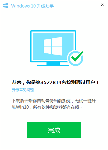 安装升级助手,会弹出检测弹窗,提示用户检测电脑是否符合升级标准;