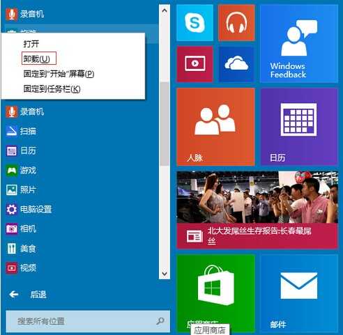 在Windows 7系统中,卸载软件是一件非常繁琐的事儿,只能通过“控制面板”选项中“程序与功能”来卸载,现在高大上的Win10将问题简单化了,在开始菜单的程序列表上点击鼠标右键即可快速到达卸载的目的。