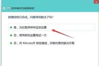 4.故障排除完成后,鼠标左键点击“是,为此程序保存这些设置”。