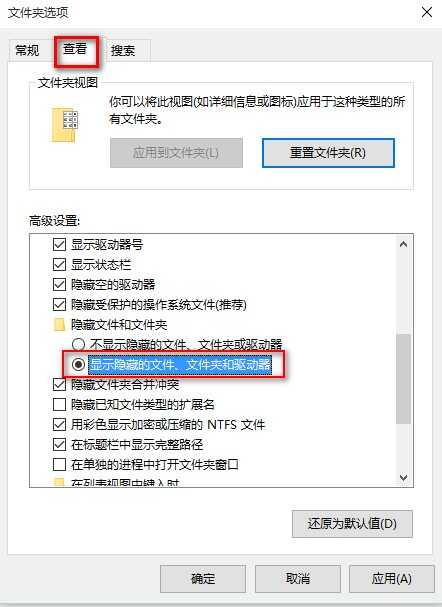 “选项”按键再点击“查看”选择“显示隐藏的文件…”确定。
