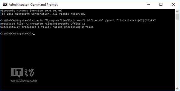 icacls "%programfiles%\Microsoft Office 15" /grant *S-1-15-2-1:(OI)(CI)RX