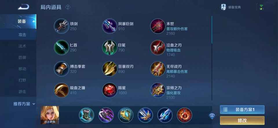 暗影战斧+冷静之靴+极寒风暴+暴烈铠甲+永夜守护+破军。