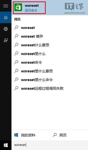 1、在Cortana搜索栏输入wsreset,然后选择第一项