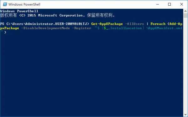 Get-AppXPackage -AllUsers | Foreach {Add-AppxPackage -DisableDevelopmentMode -Register “$($_.InstallLocation)\AppXManifest.xml”}