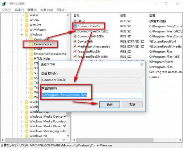 步骤3、在右侧你可以找到数值名称为ProgramFilesDir的项目,里面的默认数值数据为“C:\Program Files”,将这个值修改为你所需要设定的路径,比如“D:\Program Files”,然后确定,退出注册表编辑器