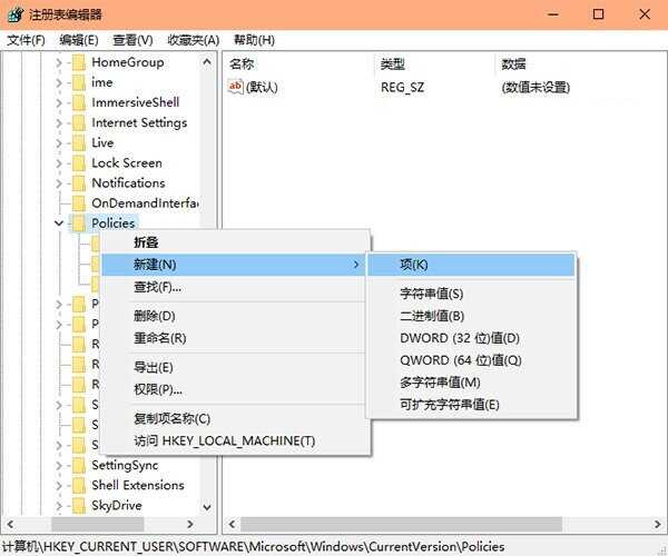 注意,若没有最后的“Association”项,可在Policies上单击右键,选择新建→项,然后重命名为Associations
