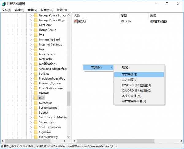 如果要添加一个启动项,你需要在空白处单击右键创建一个字符串值(String Value)并且输入你希望的名称,然后双击这个新建的值,在数值数据里输入你要启动的程序的完整路径,点击确定即可完成。