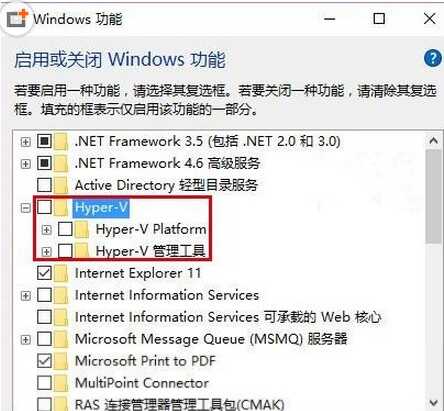 既然如此,也只能暂时委屈一下Hyper-V了,可以在控制面板中卸载后再尝试升级。进入控制面板→程序和功能→启动或关闭Windows功能,然后按照下图所示,直接去掉Hyper-V的勾选,单击“确定”即可。