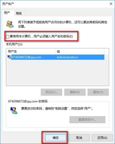 进入页面后会看见一个“要使用本计算机,用户必须输入用户名和密码”,点掉它的勾,不要输入密码。单击确定。
