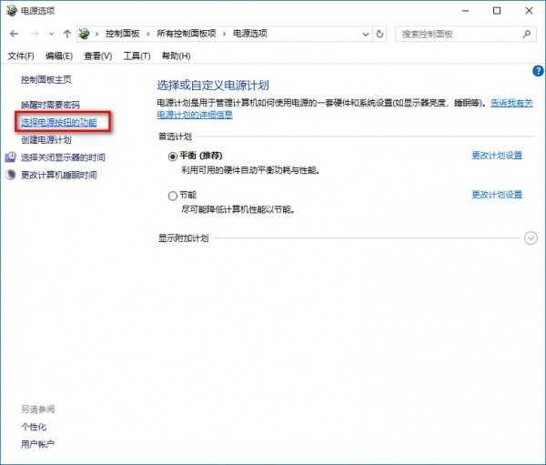 在打开的电源选项窗口,左键点击:选择电源按纽的功能,打开系统设置;