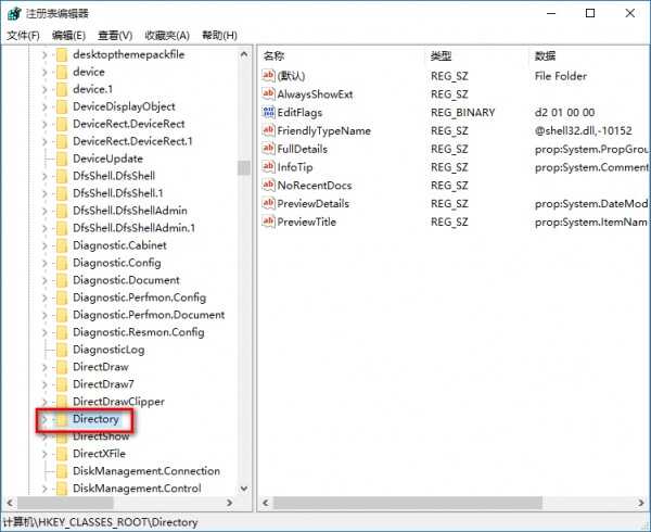然后找到HKEY_CLASSES_ROOT\Directory