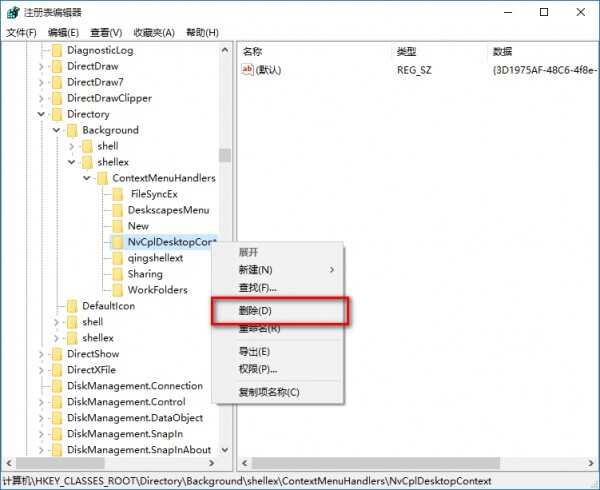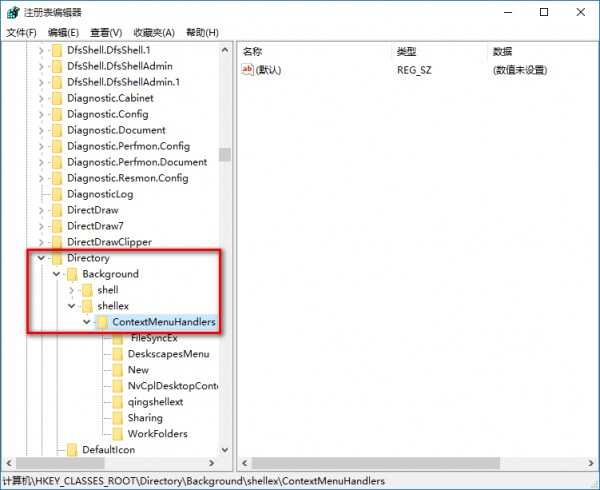 双击,找到HKEY_CLASSES_ROOT\Directory\Background\shellex\ContextMenuHandlers